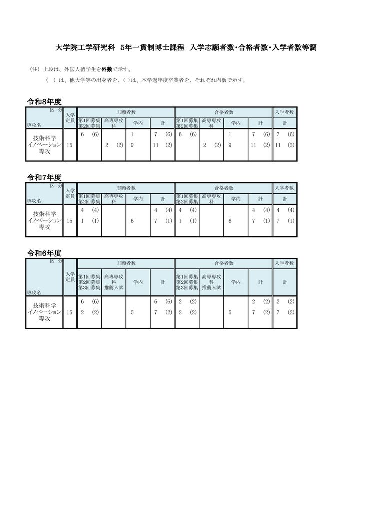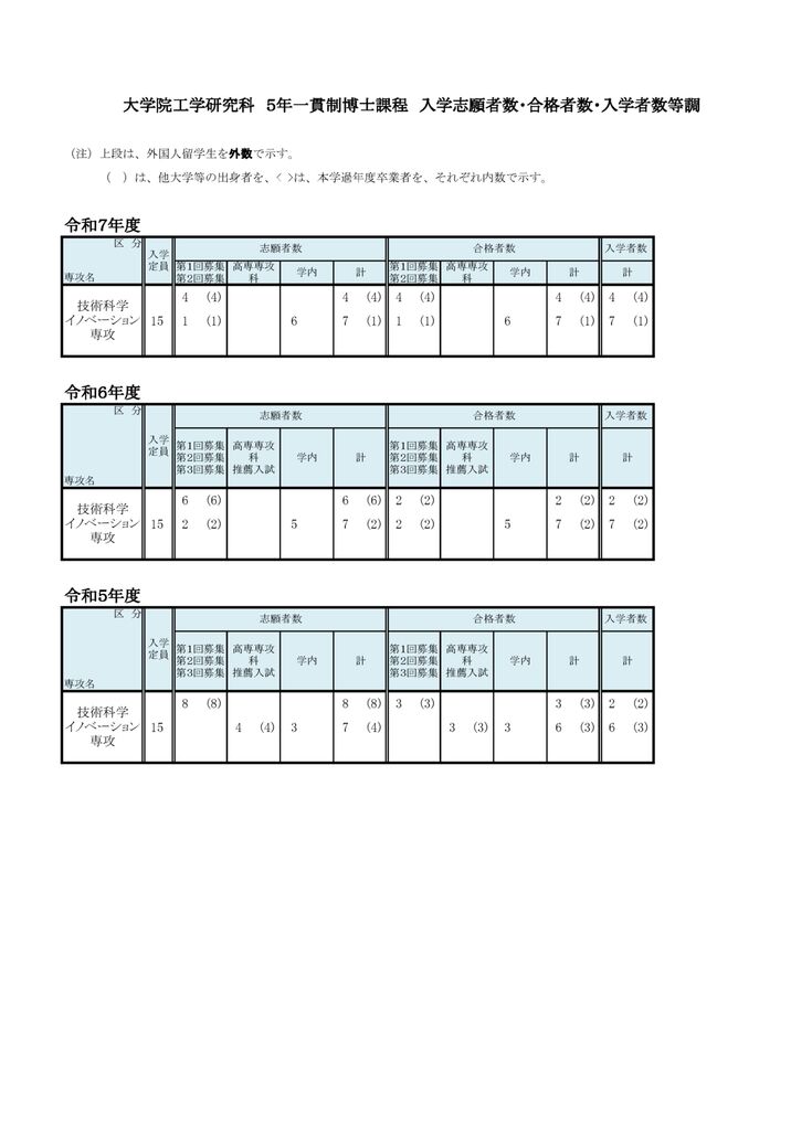 最近の志願者数・合格者数・入学者数(5年一貫制博士課程)