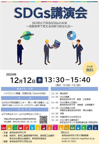 本講演会を通して、ISOの有効性やその社会への貢献可能性について講演を行い、SDGs達成に向けた具体的な取組事例を共有する場にしたいと考えております。皆様のご参加をお待ちしております。