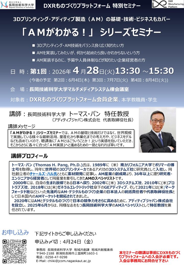 DXRものづくりプラットフォーム 特別セミナーを開催します-AMの基礎・技術・ビジネスもカバー「AMがわかる!」シリーズセミナー-