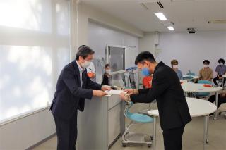 当日は、新型コロナウイルス感染症対策を行なったうえで、対面での任命式を行いました。第二期生となる学生SDGsプロモーターには、学部生から社会人学生まで幅広い年代の留学生11名と日本人学生10名の計21名が任命され、新型コロナウイルス感染症の影響で来日できていない留学生などを除く16名が任命式に参加しました。
