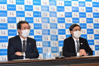 左:鎌土学長 右:湯川教授