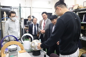 また、NAMNAN学長一行と本学に在学中のツイニング・プログラム学生との懇談会の実施や学生達が研究に取り組む様子、研究設備等を見学いただきました。