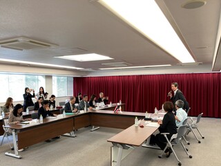 7月2日(火)、タイMHESIのPermsuk Sutchaphiwat次官をはじめタイ関係者15名、高専機構本部から中島理事をはじめ4名が本学を来訪され、タイ高専出身留学生の本学への入学や高専とのカリキュラム接続等について、意見交換・懇談を行いました。その後、テクノミュージアムを見学いただき、本学の研究成果や現在取り組んでいる研究内容について説明いたしました。