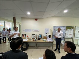 自由民主党渡海紀三朗政務調査会長及び衆議院議員の宮内秀樹様を筆頭とする代表団が2024年8月1日(木曜) 、ベトナム?ハノイ工科大学を訪問されました。本学山口隆司教授をリーダーとするJST/JICA SATREPS プロジェクト 「天然ゴムを用いるグローバル炭素循環プロセスの科学技術イノベーション」のメンバーが事業の概略を紹介しました。プロジェクトサイトでは、チーフアドバイザーによる概要説明の後、天然ゴムについて日本側のプロジェクトマネージャーによる説明があり、その後、研究室もご覧いただきました。