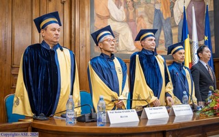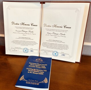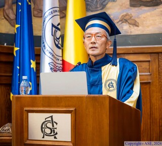 ブカレスト経済アカデミーは、改田哲也教授に、『経営学の分野における優れた科学的貢献、日本におけるルーマニア文化の深い理解と普及、私たちの大学の国際化推進への献身、そしてブカレスト経済大学の学術コミュニティに、経済学分野の国際的な著名な人物との交流の機会を提供していただいたことに敬意を表し』、ブカレスト経済アカデミー最高の名誉である名誉博士の称号を授与することを決定しました。