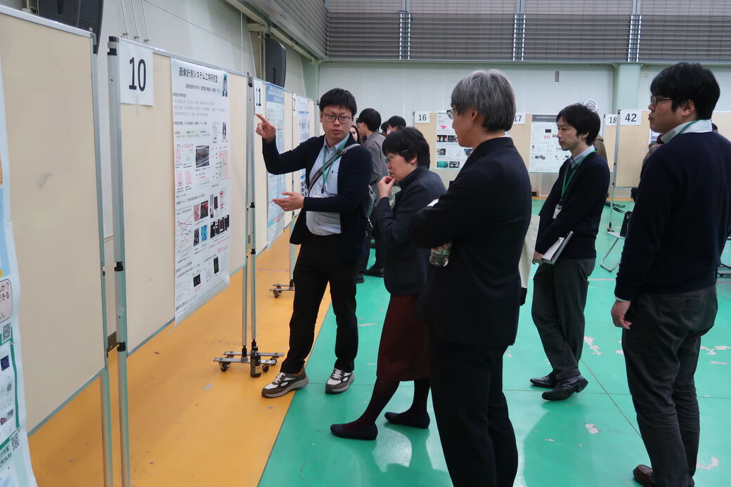 ポスターセッションは、連携大学である大阪公立大学からの参加を含め発表者48名、見学のみの参加者18名、総勢66名の研究者が結集し、3つのグループに分かれ、交代制で発表者と聴講者が入れ替わる形式で行われました。