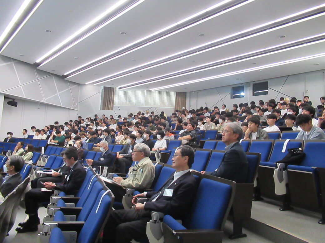 本シンポジウムは、本学が開学当初より行っている「実務訓練」の一層の充実を図ることを目的としています。今年度は、激動の時代において求められる新たな技術者像を模索し、実務訓練という本学が誇る教育プログラムの価値を再考するとともに、今後のありようについて意見交換を行う機会として、「長岡技大が育成する人材像、これからの産業界が求める人材像」をテーマに開催し、学生、学内関係者、文部科学省及び企業関係者の方等多数の参加がありました。