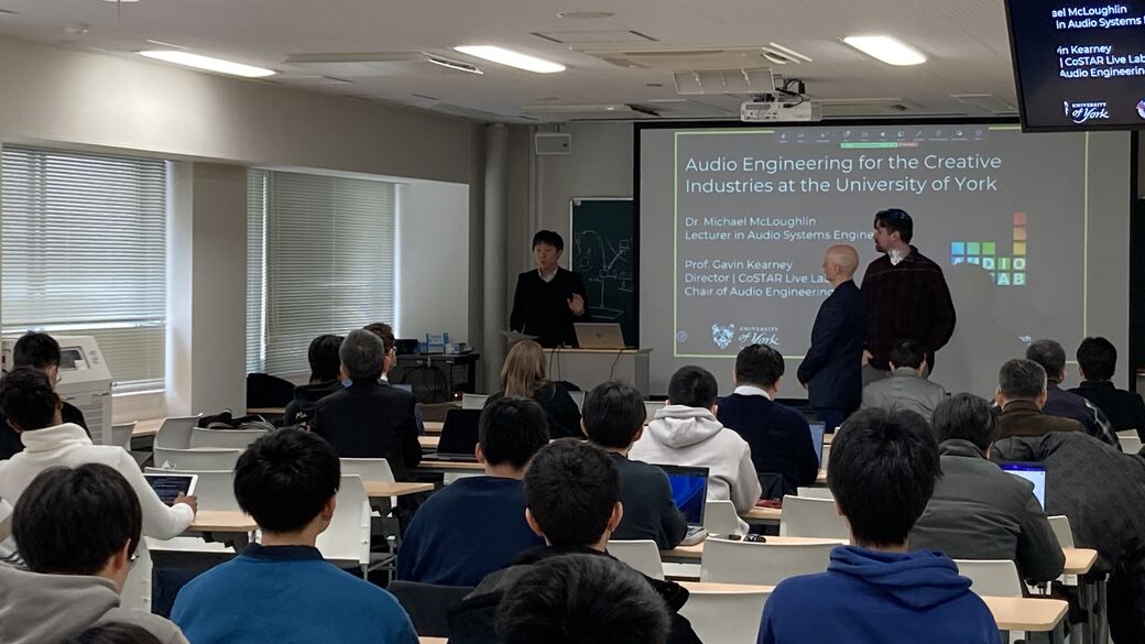 講演では、先生方の最先端の研究内容やヨーク大学オーディオラボ(AudioLab)の特色についてご紹介いただきました。会場には日本人学生のみならず、多くの留学生も来場し、質疑応答の時間まで充実した時間となりました。