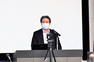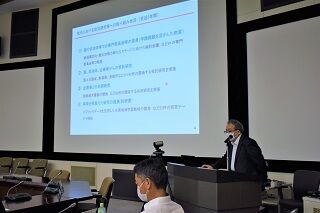 講演会では、開催に先立ち鎌土 重晴学長より挨拶を述べ、続いて大石 潔センター長からは、これまでの本学の取組とセンター構想について説明しました。その後、国立研究開発法人防災科学技術研究所 雪氷防災研究センターの上石 勲センター長と、オンラインで国立大学法人新潟大学災害・復興科学研究所の卜部 厚志副所長から各機関の取組について紹介いただき、参加者は防災・減災に関する理解を深めることができました。