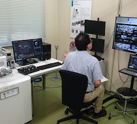 本学の河原技術専門職員が機器オペレーターを務め、対話をしながら測定データの確認等行いました
