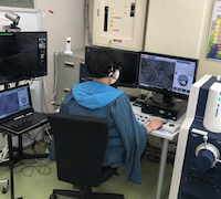 本学の小杉技術職員とPhuoc博士研究員が機器オペレーターを務め、対話をしながら協働的に観察を行いました。
